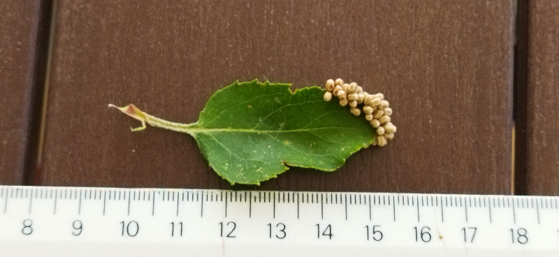 Mon épouse à remarqué, certainement des o eufs, a l'extrémité de 3 feuilles. On dirait des petits coquilles agglutinés les uns sur les autres. Nous n'avons jamais vu ça. Quelqu'un connait il ce parasite? Y a t il un moyen de le détruire?